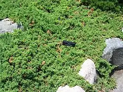 Several cultivars have been selected, the most widely grown being 'Nana', a slow-growing procumbent plant,[3][5] which in the UK has gained the Royal Horticultural Society's Award of Garden Merit.[6][7] Others include 'Bonin Isles', a strong-growing mat-forming plant collected on the Bonin Islands,[5] and 'Green Mound', which may just be a renaming of 'Nana'.[5] A variegated plant sold under the name J. procumbens 'Variegata' is actually a cultivar of J. chinensis misnamed.[5]