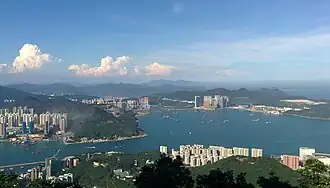 ![]() Aerial view of Junk Bay, with Tseung Kwan O Industrial Estate on the right. The waters at the top of the picture are part of Port Shelter. | |