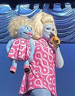 Birch began performing in drag professionally in December 2018.[3] She described her drag persona as a "Martian spy woman, meets The Muppets, meets 1960s housewife, meets Squidward, meets The Fifth Element, the sixth element, the seventh element... all the elements, darling."[10] Birch is known for her unique drag aesthetic, which features pastel "alien skin" (typically blue or pink), yellow hair, and retro sunglasses.[2] In 2020, GQ called her "one of the country's most interesting drag queens".[4] Her work and her social media have attracted significant media attention and she has collaborated with other artists, such as Alexis Stone and Trixie Mattel.[11][12]