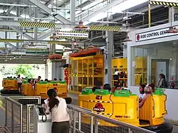 Jurassic Park Rapids Adventure is based on the concept of Jurassic Park: The Ride at Universal Studios Hollywood, which is itself based on the film adaptation of the popular novel. Jurassic Park Rapids Adventure is a Hafema river rapids ride whereas Jurassic Park: The Ride is a flume ride. The attraction first opened at Universal Studios Singapore on March 18, 2010. The attraction was temporary closed to the public for enhancement works from 10 August 2011 to 20 January 2012.[2] The ride has since reopened and includes enhancements such as a pair of "dry pods" for guests to dry off after getting soaked.[3]