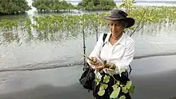 Primavera was conferred a PhD honoris causa by Stockholm University in 2004 for her scientific work that shows the role of mangroves as vital recruitment areas for marine life, and that destruction of mangrove areas associated with pond farming of shrimp may have far-reaching negative socioeconomic implications.[8] In 2005, she received a Pew Fellowship in marine conservation.[9] In 2015, she was inducted as academician of the National Academy of Science and Technology (NAST).[10] In 2022, she was elected as a fellow of The World Academy of Sciences.[11] She currently serves as the chief mangrove scientific adviser for the Zoological Society of London.[12]
