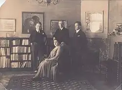 Savickis was married twice. In 1916, Savickis married Ida Trakiner, a dentist,[1] daughter of a wealthy Jewish factory owner in Saint Petersburg. They had two sons, Algirdas and Augustinas.[13] Their marriage was not happy and after a prolonged process they finally divorced in 1935 or 1936.[2] Both sons were interested in painting and attended art schools.[14][13] During World War II, Algirdas voluntarily entered the Kaunas Ghetto to be with his Jewish wife and was shot in 1943.[15] Ida Trakiner was hiding with Savickis' brother, but hung herself.[13] Augustinas sympathized with communists and retreated into Russia. He returned to Lithuania with the 50th (Lithuanian) Reserve Rifle Division and became a well known painter, awarded the Lithuanian National Prize for Culture and Arts in 1999.[13]