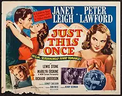 Just This Once is a 1952 American romantic comedy film directed by Don Weis and starring Peter Lawford, Janet Leigh and Lewis Stone. It was produced and distributed by Metro-Goldwyn-Mayer. The film's sets were designed by the art director James Basevi.