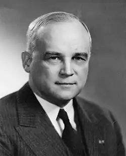 Justice Owen J. Roberts announced his resignation from the Supreme Court on June 30, 1945, effective July 31, 1945.[8] President Truman decided, as a bipartisan gesture, to appoint a Republican to replace him. He selected Burton as someone whom he knew and respected.[9] Burton's nomination was presented to the Senate Judiciary Committee on September 18, and the Senate unanimously approved it the next day.[10] Burton resigned from the Senate on September 30, 1945,[11] and was sworn in as an associate justice of the Supreme Court on October 1.[12] Burton was the last sitting member of Congress to be appointed to the Court. (Sherman Minton, a former senator, was appointed in 1949.)[13]