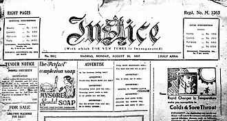 - ^ Kavitha Muralidharan (20 November 2016). "100 years of Justice Party, a movement which defined Tamil Nadu politics". The NewsMinute. Retrieved 13 September 2021.