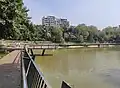 Justice Shahabuddin Ahmed Park (Bengali: বিচারপতি শাহাবুদ্দিন আহমেদ পার্ক) or in short Shahabuddin Park, is an urban park located in the Gulshan 2 area of Dhaka, Bangladesh.[1][2] In 2008 the lake was named Shahabuddin Ahmed lake, around which the park was founded in 2020 on a 9.45 acres (3.82 ha) of land.[3][4][5] The park was named Justice Shahabuddin Ahmed Park after the former Chief Justice and President of Bangladesh, Shahabuddin Ahmed.[4] The park houses a small gym, a bookstore, a prayer room and a cafe with indoor and outdoor sitting arrangements.[6][7] The park was a part of the Green Dhaka campaign, in which the main pond was cleaned and various trees were planted; this renovation cost €500,000–2,000,000.[8][9]