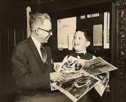 On the November 3, 1956, television debut of the MGM Wizard of Oz film, host Bert Lahr appeared with 10-year old Liza Minnelli and 13 year-old Schiller, introducing the movie by reading from Schiller's copy of The Wonderful Wizard of Oz first edition (1900).[10]