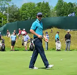 In June 2014, Rose won the Quicken Loans National defeating Shawn Stefani on the first hole of a sudden-death playoff.[21] Two weeks later, Rose won the Aberdeen Asset Management Scottish Open. At the 2014 Ryder Cup, Rose emerged as the leading points-getter, amassing four points in a 3-0-2 performance, as Europe won. At the 2015 Masters Tournament, Rose finished in a tie for second with Phil Mickelson behind winner Jordan Spieth. Two weeks later he won his seventh PGA Tour tournament at the Zurich Classic of New Orleans.[22] In October, he won the UBS Hong Kong Open on the European Tour defeating Lucas Bjerregaard by one stroke.[23]