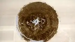 The building's construction is dated by an Arabic foundation inscription to 1085, during the Fatimid period and the reign of al-Mustansir Billah. The inscription identifies the structure as a mashhad (Arabic: مشهد, lit.'shrine'), meaning a commemorative shrine or mausoleum.[2][3] It is not clear whom the mashhad commemorates or what its exact function was.[4][1] The most plausible theory is that the monument commemorates the victories of Badr al-Jamali, the powerful Fatimid vizier whose title, Amir al-Juyush ("Commander of the Armies"), is invoked in the foundation inscription.[5] Badr al-Jamali himself was not buried here, but rather in a tomb outside Bab al-Nasr, according to al-Maqrizi.[2] The structure's isolated setting on the Muqattam hills above Cairo is also unusual and has even led to one scholarly theory suggesting it was actually a watchtower disguised as a mosque.[2][1][4]