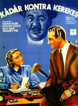 Kádár Versus Kerekes (Hungarian: Kádár kontra Kerekes) is a 1942 Hungarian comedy film directed by Ákos Ráthonyi and starring Klári Tolnay, László Szilassy and Gerö Mály.[1] [2] It was shot at the Hunnia Studios in Budapest. The film's sets were designed by the art director József Simoncsics.