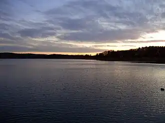 The marshy shore of the lake was the probable site of the crash of Avro Lancaster Flight DV202 in August 1943.[1]