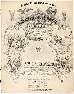 The Königgrätz March (AM II, 134 (AM II, 195)), also known as Der Königgrätzer or Der Königgrätzer Marsch, is one of the most famous German military marches, composed in 1866 by the German band leader Johann Gottfried Piefke in commemoration of the Battle of Königgrätz, the decisive battle of the Austro-Prussian War, in which the Kingdom of Prussia defeated the Austrian Empire. In Piefke's most successful arrangement of the Königgrätzer Marsch, another march, Der Hohenfriedberger (commemorating the Battle of Hohenfriedberg), is used as a trio. The commonly played version (AM II, 195) is set as an infantry march, while an alternate adaptation is arranged as a cavalry galop (AM III, 228). The German military march catalogue also has the "Königgrätzer mit anderem Trio" ("Königgrätzer with Other Trio"; Heeresmarsch IIIB, 67), but this secondary composition is far less recognized.