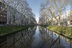 The Königsallee (German pronunciation:[ˈkøːnɪçsʔaˌleː]ⓘ; literally "King's Avenue") is an urban boulevard in Düsseldorf, state capital of North Rhine-Westphalia, Germany. The Königsallee is noted for both the landscaped canal that runs along its center, as well as for the fashion showrooms and luxuryretail stores located along its sides.