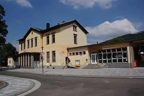 Königswinter station is a station on the East Rhine Railway (German: Rechte Rheinstrecke) in the city of Königswinter in the Rhein-Sieg-Kreis district of North Rhine-Westphalia, Germany. It is a protected as a monument. The station was opened on 11 July 1870 as part of the extension of the East Rhine Railway from Neuwied to Oberkassel.[4]