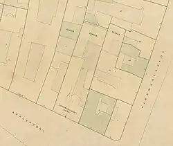 The property was home to 12 residents in two households at the 1787 census. Daniel Symons, a Jewish merchant, resided in the building with his wife Clare Meyer Jerocham, Jerochams Symons, their four children (aged eight to 14) and one maid.[2] Mathias With, another Jewish merchant, resided in the building with his an office clerk, two apprentices and one maid.[3]