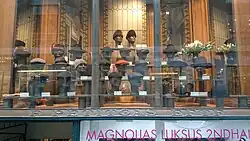 Up to 40 hatters were occupied with hat making in the rear wing in the 1880s. The shop window was installed in conjunction with a renovation of the shop in 1892. Part of the interior, including a clock and the glazed ceiling also date from this time. Petitgas won a gold medal at the Exposition Universelle in Paris in 1900.[25]