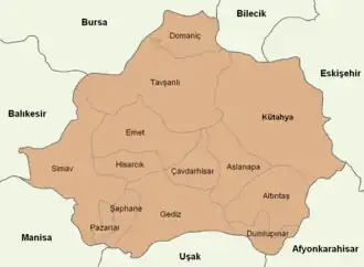 - ^ a b c d e "Kütahya (il)", Vikipedi (in Turkish), 2020-11-20, retrieved 2020-11-24