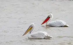 The delta is important for birds crossing the Black Sea,[53] and three-quarters of bird species in Turkey have been recorded in the delta.[54] About 950 pairs of white storks migrate to Africa and return to breed here, and their numbers are increasing.[55] Although elsewhere storks commonly nest on manmade structures such as electricity pylons, in the delta almost all nest in trees.[56] Rather than their usual migration to Mozambique, Kenya or Egypt, storks which are injured or cannot fly can survive year-round in the delta.[56] Other birds species in the region include the grey-headed swamphen and the great egret. Birds are ringed, on spring migration but mostly during the autumn migration (as they need longer to rest due to coming over Black Sea[57]), at Cernek Ringing Station[58] and Ondokuz Mayıs University's bird research center,[59] which has ringed 165 thousand birds from 175 species.[57] 23 years of ringing has shown that climate change is affecting migration timing. Because spring migrants arrive overland they generally do not need to feed up for long before continuing north over the Black Sea to their breeding grounds. In autumn they return from over the Black Sea with their young, so far more are ringed in autumn. The university's two bird watching towers are open to visitors.[60]