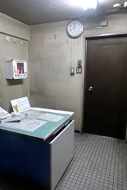 A kōban (Japanese: 交番) is a small neighborhood police station found in Japan. The term also refers to the smallest organizational unit in a modern Japanese prefectural police force.[1] Small kōban buildings, staffed by uniformed officers at around 6,000 locations across the country,[2] are the bases for community policing activities which complement the work of larger, central police stations. Although often translated into English as "police box",[3] kōban bear little resemblance to the police boxes formerly found in the United Kingdom or the police call boxes formerly found in the United States, as they are larger and more permanent structures than both police boxes and call boxes.