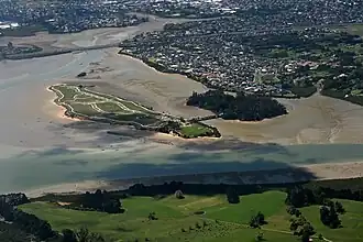 Kōpuahingahinga Island[1] is an island within the Pahurehure Inlet of the Manukau Harbour in Auckland, New Zealand. Kōpuahingahinga and Pararekau Island, are together known as the Hingaia Islands.[1] It covers an area of 8.0 hectares (20 acres), and is near the Drury Creek. It is privately owned, and connected to the mainland and to neighbouring Parerēkau Island by causeways.[2]