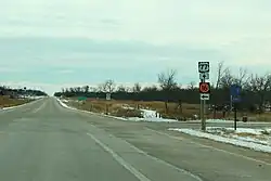 K-16 is a 114.460-mile-long (184.206 km) state highway in the U.S. State of Kansas. K-16's western terminus is at a junction with U.S. Route 77 (US-77) just north of Randolph and the eastern terminus is at US-24 and US-40 in Tonganoxie. Along the way K-4 intersects many major thoroughfares including US-75 in Holton, K-4 near Valley Falls and US-59 from west of Winchester to south of Oskaloosa.