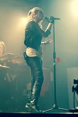 2017 is the year when she releases the first song off her upcoming album "Fearless";[16] a mix of Electropop and synth-pop, as she describes it. "Over",[17] the first single chosen out of the 11 songs contained in the album, rapidly climbs the DTR Global Top 200 Airplay[18] peaking at number 166, Global Top 150 Independent Airplay[19] peaking at number 48 and Global Top 50 Pop Airplay[20] peaking at number 43.