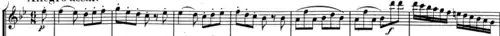 Wolfgang Amadeus Mozart composed his String Quartet No. 22 in B-flat major, K. 589, in 1790 in Vienna after a visit to the court of King Friedrich Wilhelm II, King of Prussia. Mozart traveled with his friend and piano student Karl Alois, Prince Lichnowsky, and during these travels they had the opportunity to stop in Potsdam and attend an audience for Mozart at the King's court.[1] Mozart was under financial stress and hoped to hold a position at the court of King Wilhelm II.[2] Wilhelm was an amateur cellist, which is why the set of Prussian Quartets, of which the String Quartet No. 22 is a part, features an unusually prominent role for the cello. Despite such compositional efforts by Mozart to gain employment from the king, these quartets were sold without any dedication and published by Artaria.[2]