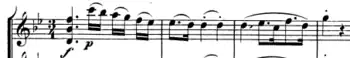 During the inception of the quartet, Mozart was in debt to Artaria because he had a failed subscription deal with that publisher. He was also in debt with his landlord and had conflicts over his debts with a pawnbroker.[3] It was under these circumstances that he had his audience with King Friedrich Wilhelm II. The choice of Mozart to compose a prominent role for the cello was seemingly a strategic choice as the King himself was an amateur cellist.[2] Mozart was never employed at the Prussian court, nor did the quartets ever receive a dedicatee. Mozart sold these quartets to Artaria so that, as he said in personal letters, "[He] could have cash in hand for [his] difficulties".[3] These financial difficulties contribute to the quartet's unique character and style that contrast with Mozart's other late quartets.[4][5]