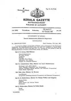 - ^ Kerala Gazette 1977 April 27 Volume: XXII, GazetteNumber:25