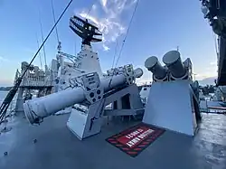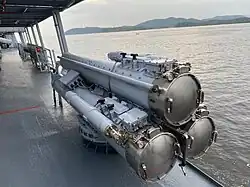 As for the weapon systems, Lekiu equipped with one Bofors 57 mm gun and two MSI DS30M 30 mm cannon. For the missiles, there was 16 Sea Wolf surface-to-air missile for air defence and 8 MM40 Exocet block 2 anti-ship missile for anti surface warfare. Two triple Eurotorp B515 with A244-S ASW torpedoes also installed for anti submarine warfare.[4][5]