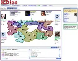 KDice is a browser-based multiplayer strategy game based on Taro Ito's Dice Wars.[1] KDice is programmed in Adobe Flash and AJAX by Ryan Dewsbury and was released in 2006. Gameplay in KDice is a simplified version of Risk with the primary goal of the game being to control every territory on the map.