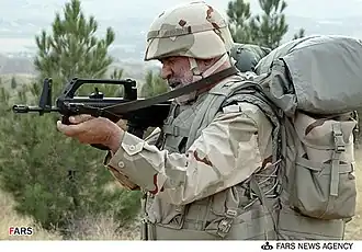 In the early 2000s, Iran was testing prototypes of G3 battle rifles made under license for the Iranian military in bullpup configurations to test their feasibility.[6] This was later dropped in favor of a similar weapon that is chambered in 5.56 NATO.[6] The KH-2002 was planned, from 2006, to replace the G3s in the Iranian military.[7]