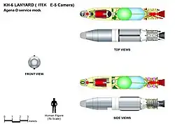 BYEMAN codenamed LANYARD, the KH-6 was the unsuccessful first attempt to develop and deploy a very high-resolution optical reconnaissance satellite by the United States National Reconnaissance Office.[1] Launches and launch attempts spanned the period from March to July 1963. The project was quickly put together to get imagery of a site near Leningrad suspected of having anti-ballistic missiles.[2]