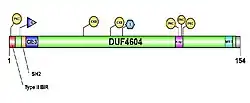 This protein has a function that is not yet objectively understood. KIAA1143 has no alias and has the longest most functional variant named as uncharacterized protein KIAA1143 isoform 1.[7] The mature mRNA transcript is 5079 Base pairs long while the length of the KIAA1143 protein is 154 amino acids. KIAA1143 has another transcript variant called KIAA1143 variant 2, which contains an alternate 3' terminal exon, resulting in a distinct 3' coding region and 3' UTR, compared to variant 1. The encoded isoform 2 has a distinct C-terminus and is shorter than isoform 1. The KIAA1143 protein belongs to the uncharacterized protein KIAA1143-like Family, and contains DUF4604 domain of unknown function. KIAA1143 has a predicted function of cell structure/mobility by encoding heavy neurofilament subunits in neurons.[8] Immunohistochemistry staining from Thermo Fisher Scientific shows presence of KIAA1143 in a cytokinetic bridge, which is involved in cellular cytokinesis. This indicates KIAA1143 may have a role in regulation of cellular division and/or communication as well.