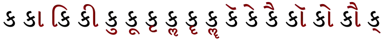 Like other Devnagari consonants, the inherent vowel of क can be altered by the addition of vowel marks, called "matras". In addition, several other diacritics can be used to alter the base consonant or append sounds to the syllable.