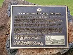 The exact date of the airport's construction is unknown, but was presumably built to transport workers to develop Kaanapali into a resort by Amfac, Inc. around 1961.[2] It was not shown on the 1961 USGS topographic map.[3]