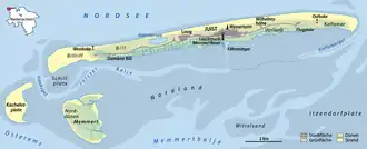 ![]() Aerial view of Kachelotplate from the southwest with Juist in the background | |