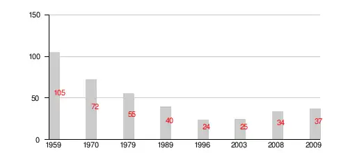 | Population | 105 | 72 | 55 | 40 | 24 | 25 | 34 | 37 |