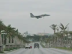 The Kadena area has some of the oldest settlement remains, in the form of shell mounds, on Okinawa Island.[5] The Hija River, the modern border between Yomitan and Kadena, was the focus of these early settlements.[5] A number of ruins of minor gusuku (castles and forts) can be found in the area.[5] Amawari, an infamous warlord, was born in the Kadena area while it was still part of Chatan.[5] Japan annexed the island in 1879, and Chatan became a village in 1908. During the Pacific War, Japan built an airstrip in the Kadena area. During the Battle of Okinawa in 1945, the United States landed on the banks of the Hija River and captured the airstrip. The airstrip became Kadena Air Force Base. On December 4, 1948, the American military government separated Kadena from Chatan and established Kadena village.[5] The United States built Kadena Circle outside the base. On January 1, 1976, four years after Okinawa reverted to Japanese control, Kadena was elevated to town status.[5]