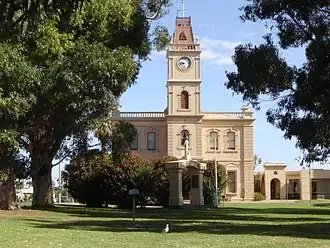 Kadina Town Hall is a heritage-listed town hall at 51 Taylor Street, Kadina, South Australia. It was listed on the South Australian Heritage Register on 4 March 1993 and on the former Register of the National Estate on 1 November 1983.[1][2] It is now managed by the District Council of the Copper Coast, who operate out of a modern extension to the building.[3][4]