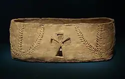 A Zoroastrian ossuary (with the shape of a cross, but unrelated to Christianity), dated 6-7th century CE, was also discovered in Kafir Kala.[12] Numerous seals and pottery items have also been found.