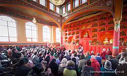 In April 2013 a second shrine room was opened by Akong Tulku Rinpoche. This followed a five-month project of traditional Tibetan artwork by volunteer artists[12] under the guidance of renowned thangka painter Lama Rigzin who travelled from Nepal to oversee the work.[13] This shrine room is located in the main hall of the original Victorian library.