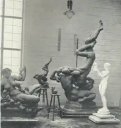 Kai Nielsen and Ivar Bentson were personal friends. They collaborated on the design of Blågårds Plads in 1912–1915 and Nielsen painted a portrait of Bentson in 1913.[1] The house at Krathusvej 2 in Ordrup Krat was built in 1914–16.[2] Nielsen married his second wife Janna Lange Kielland Holm in July 1915. Their daughter Nina was born in 1917 and their son Yan was born in 1919. Kai Nielsen's atelier was located in part of the building. He died just 41 years old in 1924.[3]