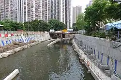 The Kai Tak Nullah is about 2.4 km (1.5 mi) in length. It flows from Po Kong Village Road along Choi Hung Road, pass Tung Tau Estate and San Po Kong, into Kai Tak Development Area before discharging into the Victoria Harbour at the Kwun Tong Typhoon Shelter. It has an upstream and a midstream. The nullah is one of the major flood relief drainage channels in the East Kowloon area.[1] The improvement work of Kai Tak Nullah has been overseen by the Civil Engineering and Development Department since March 2012, aiming to turn the nullah into an attractive green river corridor.[2] It was anticipated to be fully completed before 2021.