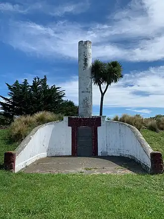 In 1848 the site was visited by Walter Mantell. He had been tasked with identifying the location of the northern boundary of Kemp's purchase of land from the South Island iwi. The deed specified that the iwi had sold all land as far north as 'Kaiapohia', but Kemp himself never visited the location and marked it as close to the Hurunui River. During his visit, Mantell stood in the middle of the former pā and argued about land ownership with representatives of Ngāi Tūāhiriri. He recorded the pā itself as a reserve belonging to Māori on his map.[26] A monument to the pā was erected in 1898 by James Stack, who had been an Anglican missionary with the local iwi.[2] The inscription on the monument reads: