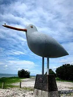 The Torea Mangu Oystercatcher sculpture is the world's largest sculpture of an oystercatcher. It stands between the Pink Shop Seaside Store and Kaiaua School. Over 4 metres long and 3.5 metres tall, the 2.5 ton bird is constructed of ferro-cement. The sculpture is by local artist Tony Johnston and represents the mother of all oystercatchers. In Māori 'torea mangu' means black oystercatcher. Erected facing north east, the direction of prevailing winds, the sculpture symbolises the wildlife of The Firth of Thames.[14]