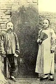 Some Jesuit reports inaccurately stated the Kaifeng Jews did not intermarry. The Ming dynasty (1368–1644), in reaction to the foreign dynasty it replaced, laid down a policy of discrimination against foreigners, such as the resident Mongols and Semu. Laws regarding ethnic endogamy were issued that forbade members of such communities from marrying within their own groups. They were at liberty to marry only Han Chinese. Failure to do so would lead to enslavement.[56] To what degree these measures were applied is unknown, but is evident from their Memorial Book that intermarriage took place on a large scale among the Kaifeng Jews certainly from Ming and it may be assumed, in Qing times. From the 19th century onwards it became the norm.[57] They followed the Chinese custom of foot binding.[58][w] The custom of the levirate marriage was retained, and polygamy was practiced: one Kaifeng Jew, the Zhang (張) clan's Zhang Mei, is recorded in the Memorial Book as having six wives, while Jin Rong-Zhang from the Jin clan (金) had five.[58][x]