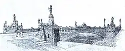 The connection between the "Große Gass" and the settlements outside the city walls – in the form of the Martinstor – was severed in the 17th century when Sébastien Le Prestre de Vauban had the city fortified and the settlements outside the city walls leveled. Salzstraße was then used as an access road from Höllental. For the bridal procession of the future French Queen Marie Antoinette, consisting of 235 people, 57 wagons and 250 draft and saddle horses, however, the street was not wide enough. In order to give her a welcome which befitted her social status in spite of this, it was decided that she was to enter the city through the gateway called Breisacher Tor via Gartenstraße on 4 May 1770. For this reason two new streets, "Dreisamstraße" and "Schreiberstraße", were built on the northern bank of the Dreisam. Three arcs of triumph were constructed in honor of the Dauphin of France by three of the city’s greater organisations: one by the City of Freiburg erected at the "Karlskaserne", barracks near the town; one by the University where what is today the Old City Hall (Altes Rathaus) and one by the representation of the estates of the realm on "Große Gass". The latter was the biggest of them, measuring 24 meters in height and 18 meters in width. The arc was constructed by Johann Christian Wentzinger, using only wood and plaster. Marie Antoinette stayed at the Kageneckschen House, a locally well-known landmark, on Salzstraße, right before moving on to Schuttern Abbey on the morning of May 6.[5]