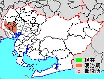 Map showing original extent of Kaisei District in Aichi Prefecture: