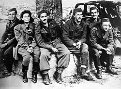 He was arrested by the Yugoslav authorities at the end of January 1941 and sent to a prison camp in Ivanjica, Serbia,[5] where he remained until mid-February. On 6 April 1941, the first day of the Axis invasion of Yugoslavia Kajuh volunteered for the Yugoslav Army to defend his country. He joined a group of volunteers in the Sava Hills aiming to assist the Yugoslav Army in its fight against Germany. On 28 April, after the Nazi German occupation of northern Slovenia, he was arrested by the Gestapo and imprisoned in Slovenj Gradec. He was released in May and he hid in the Savinja Valley before escaping to Ljubljana in September, where he joined the clandestine Security Intelligence Service (VOS) of the League of Communists of Slovenia.[10] On New Year's Eve of 1942, he also met Silva Ponikvar, to whom he dedicated a number of his most highly regarded poems.[11] In 1943, he joined the Partisans in Inner Carniola.[5]